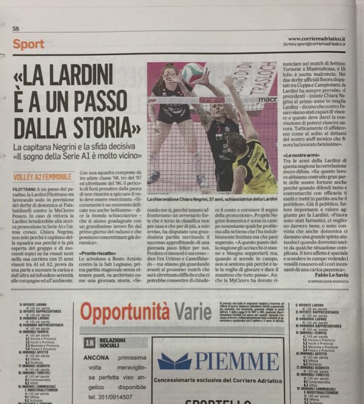 Chiara Negrini intervistata dal Corriere Adriatico! La Capitana della Lardini si carica sulle spalle le ragazze terribili di coach Bellano, senza dimenticare i tifosi filottranesi, ormai parte del suo cuore. La Draga nonostante 15 stagioni di serie A alle spalle sa ancora emozionarsi, per un derby che potrebbe proiettare lei e la sua squadra nella massima serie!